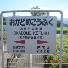 実際に使われている無人駅で、駅前にはかわいい絵の看板があります。