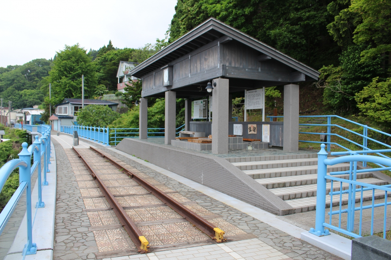 廃線跡の遊歩道には足湯、共同浴場もあります