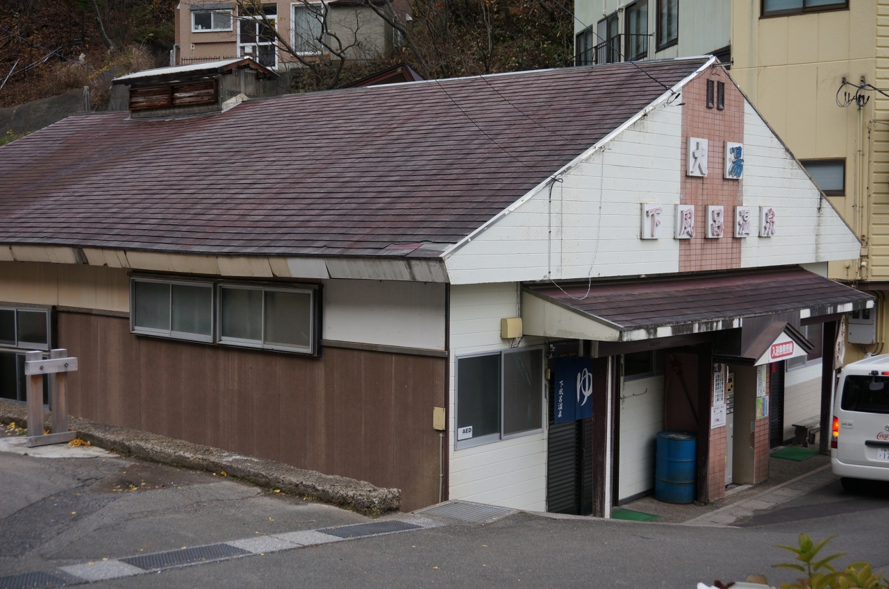 下風呂温泉には大湯と新湯という二つの共同浴場があります。大湯は白濁、新湯は透明でどちらも硫黄の匂いがします。