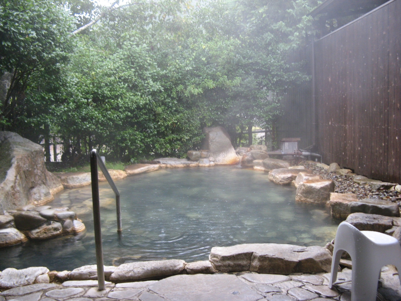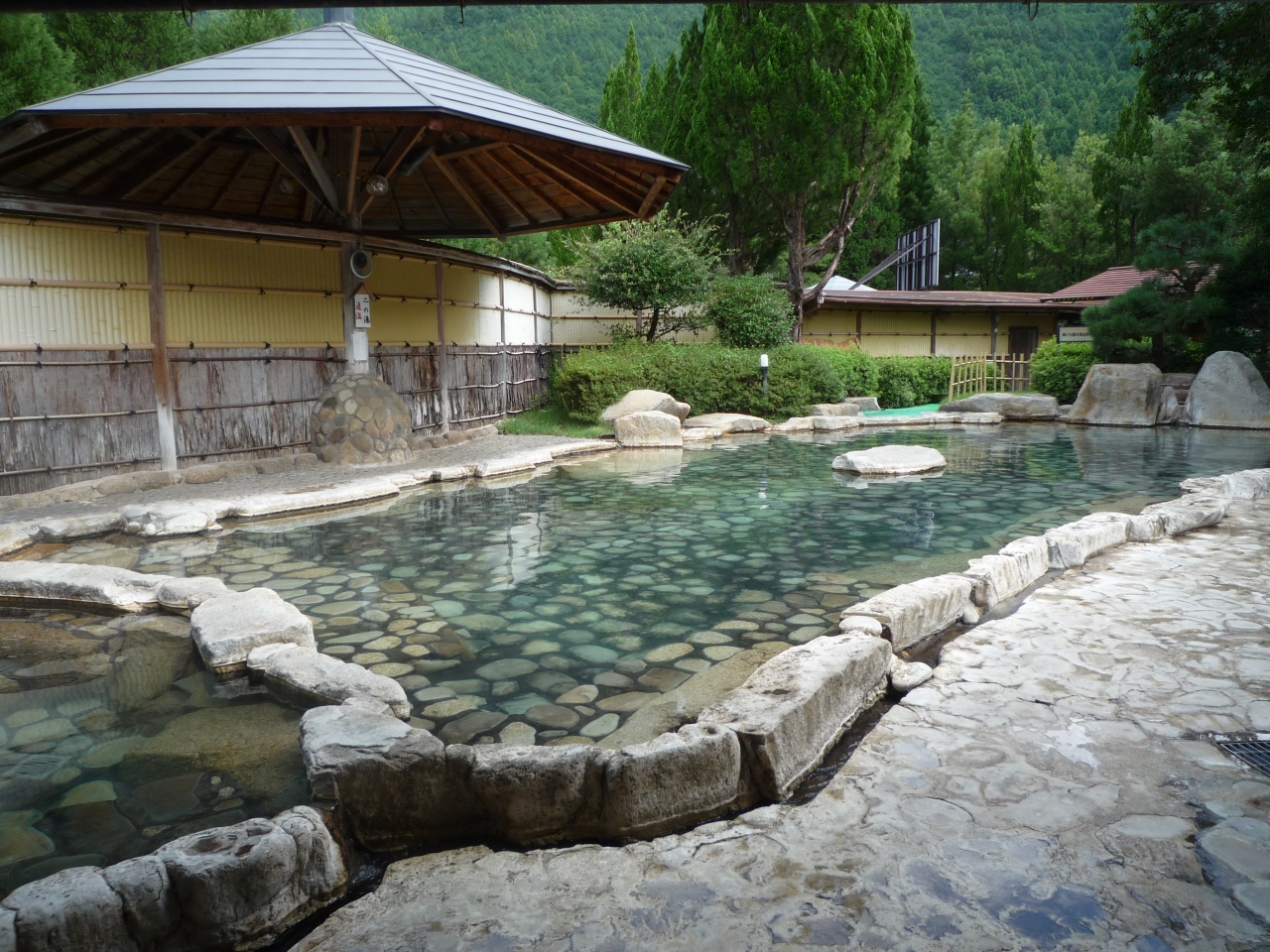 さて、西日本最大級の露天風呂であるが、入浴料は大人700円、子供300円で朝の6時から夜10時までの営業である。千人風呂と銘打つだけあって大きくて広い。しかし、千人は無理であろう。定員は400人である。湯量は豊富でかけ流しの天然温泉。無色透明ナトリウム炭酸水素塩泉となっている。無味無臭であるが肌に優しく心地よい。湯槽は全部で五つあり、手前から順次、高温、適温、低温と分かれているので自分の好みの湯槽に入ればいいだろう。脱衣所もまずまずの広さであるが400人の定員では狭いと思われる。ロッカーは人数分用意されているのだが。