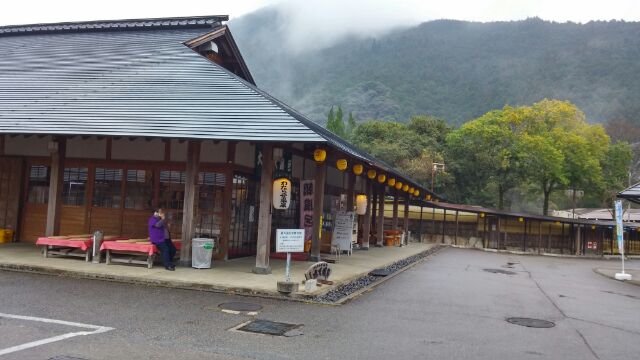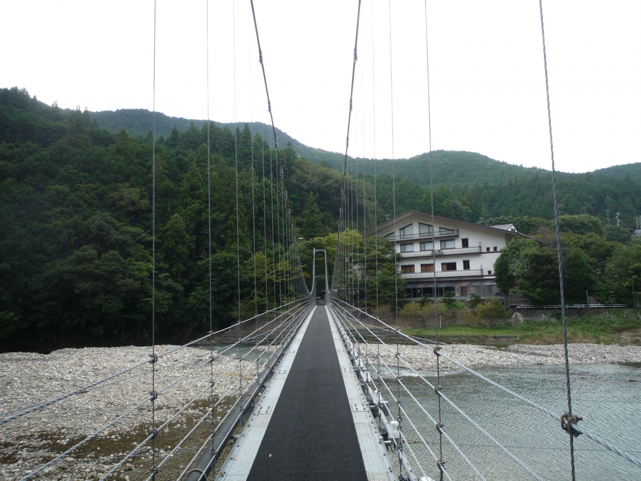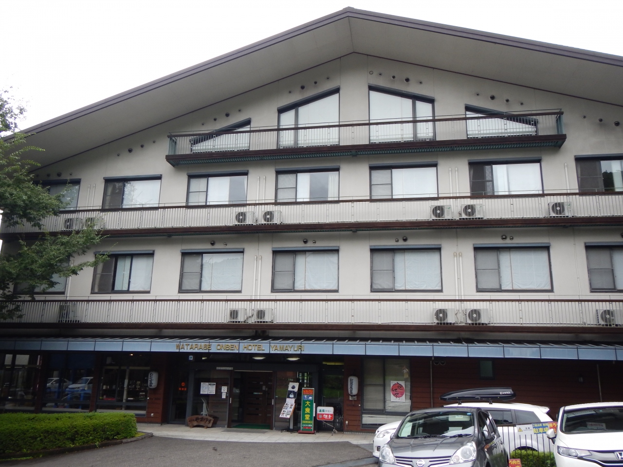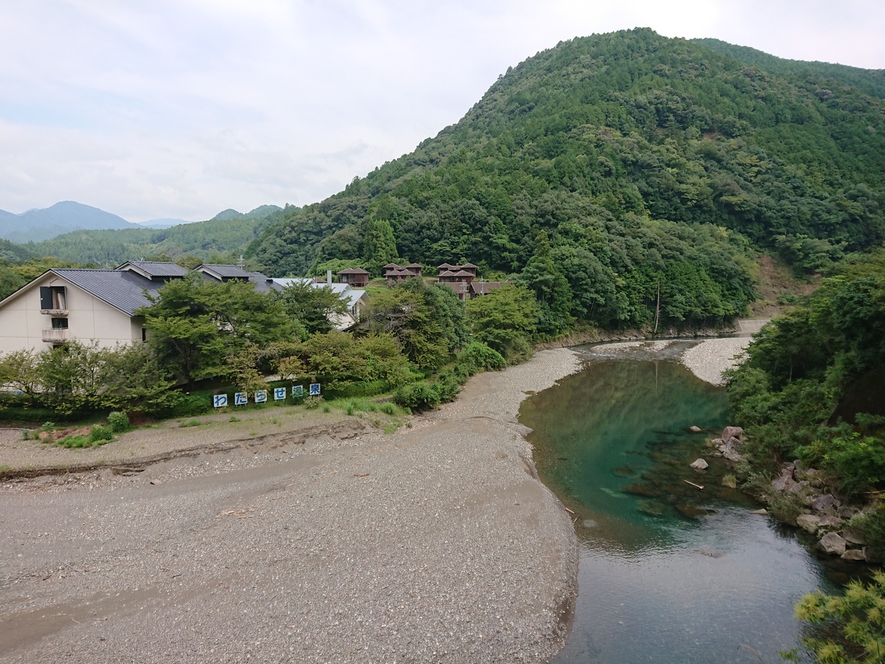 熊野街道のトンネルを抜けると渡良瀬温泉の大看板が右に見えてくる。この看板を曲がると渡良瀬温泉名物の西日本最大級の露天風呂に行き着く。謝って311号を左に行ってしまうと姉妹ホテルの「やまゆり」に行ってしまうので注意しなければならない。この「やまゆり」ホテルも山間のリゾートホテルという佇まいで、四村川を挟んでリゾートを楽しむには素敵である。間違ってこのホテルに入ってしまったため、そう思った。