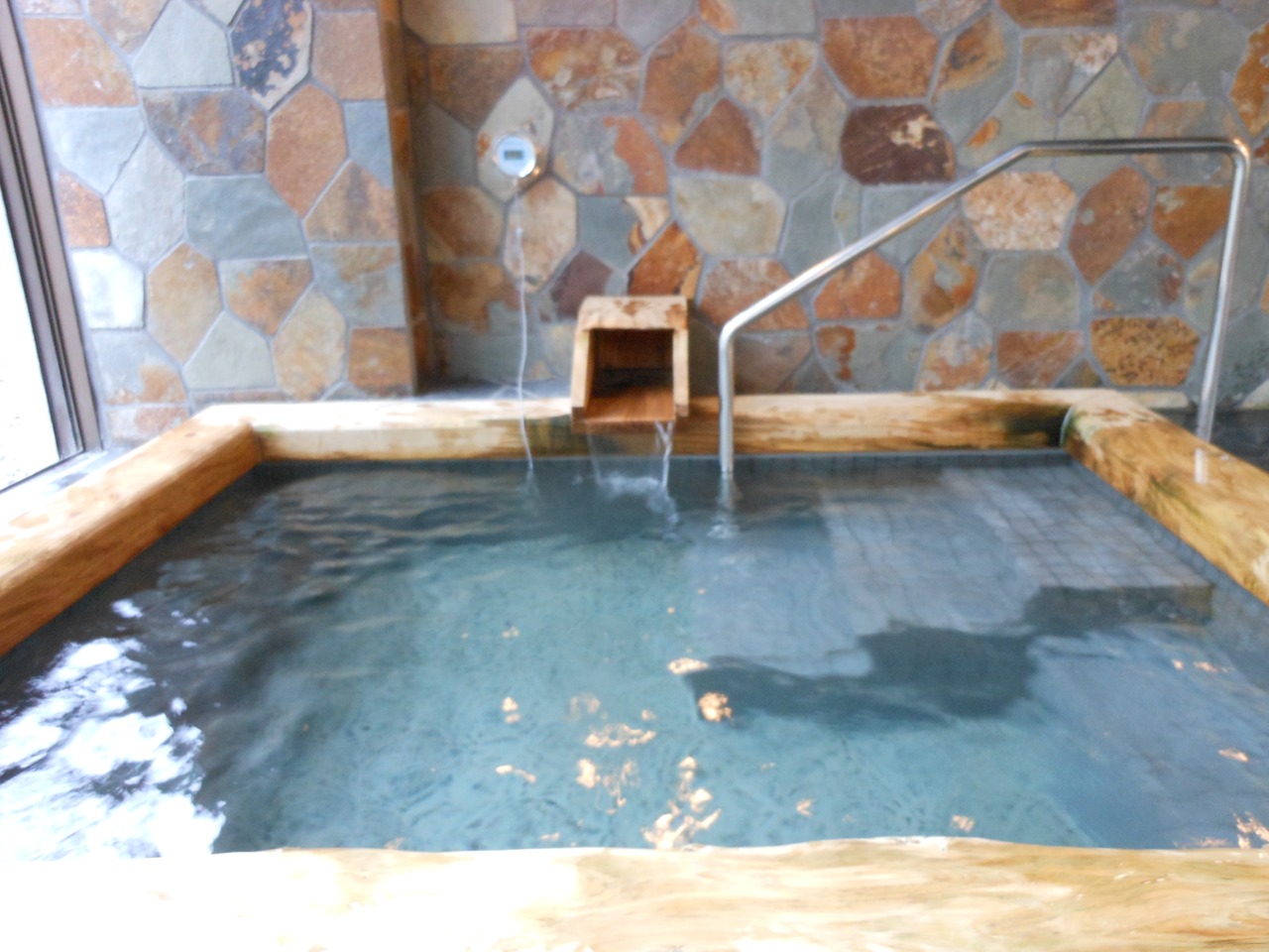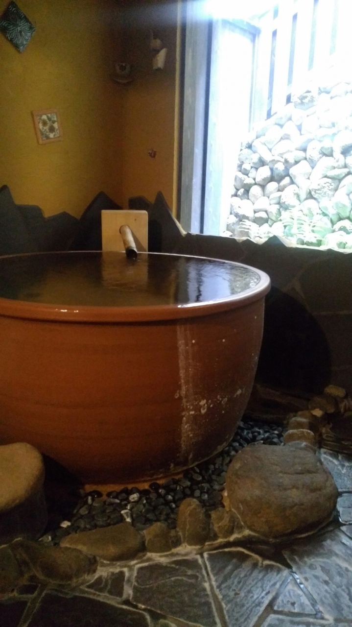 案内されたのは「陶の湯」。大きな陶器でできた風呂釜、掛け流しの温泉です。