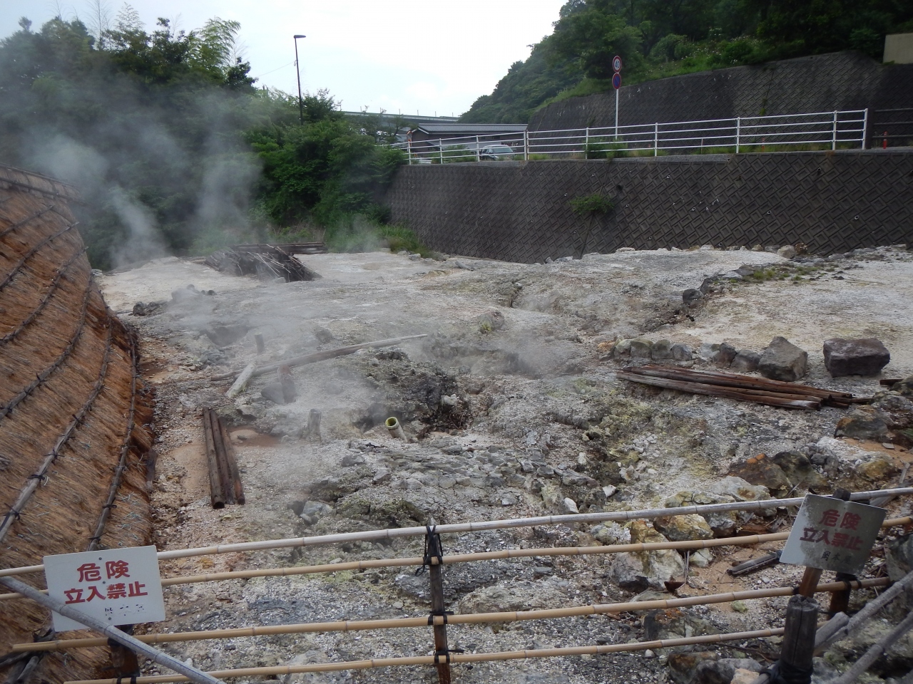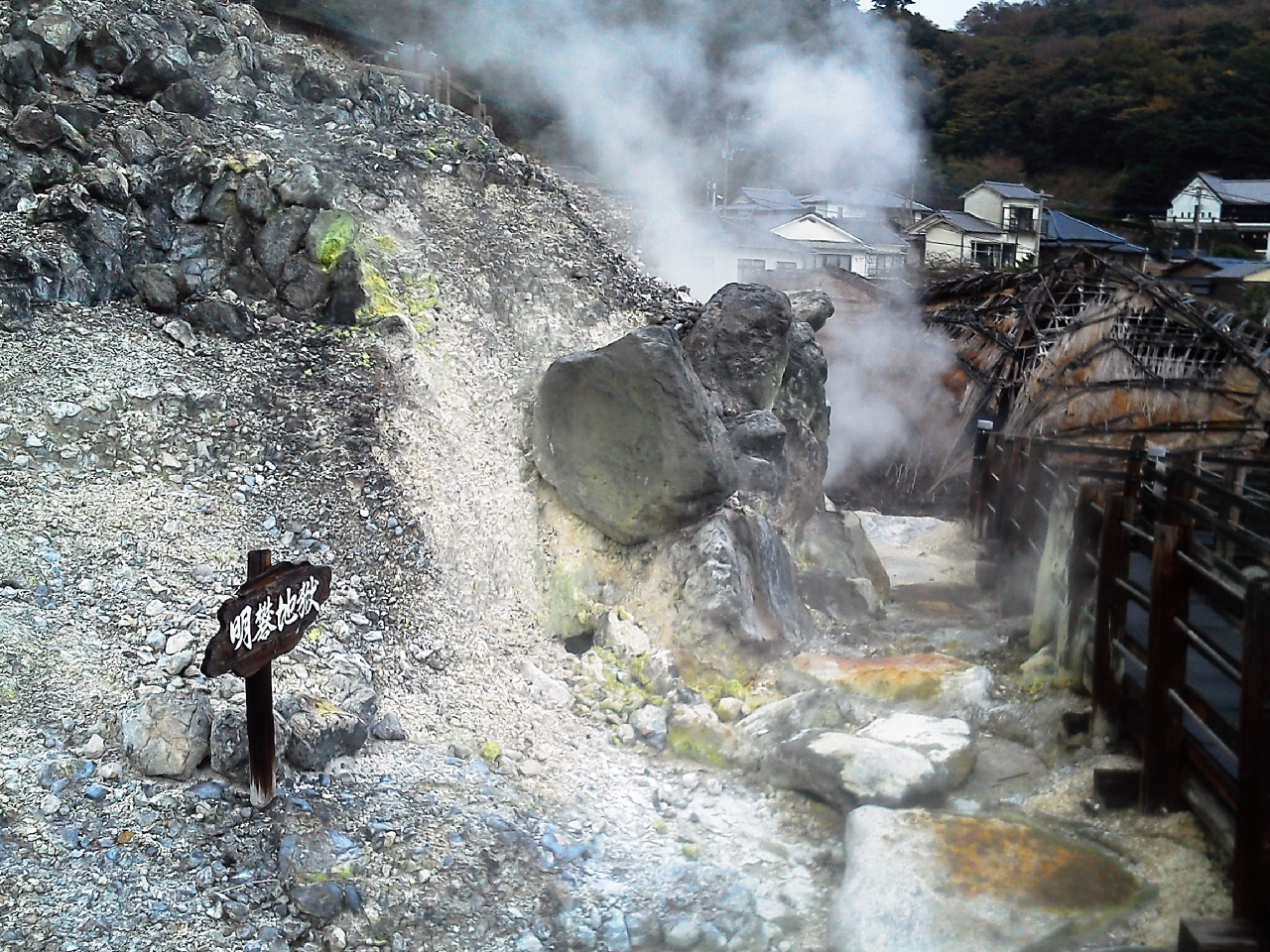 湯布院温泉へ出かけた帰りに別府の地獄めぐりをして、飛行機に乗る前に一風呂温泉に入ろうと明礬温泉に行きました。