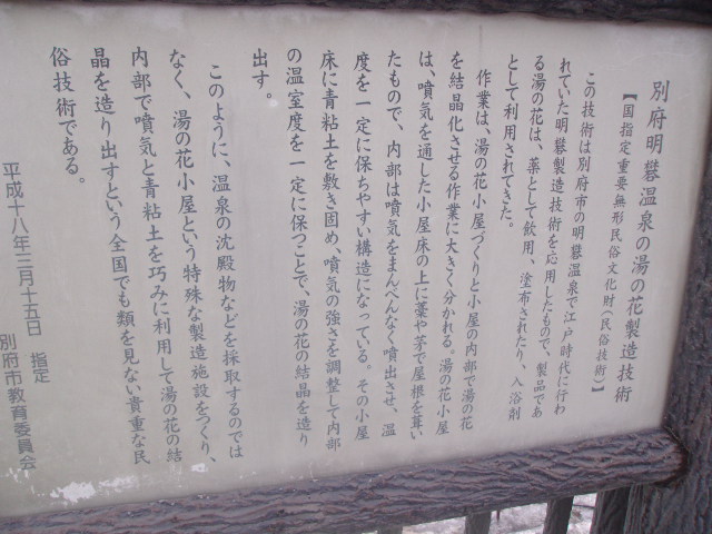 別府温泉の一番高い場所に位置する明礬(ミョウバン)温泉は、湯の花採取が盛んな場所。