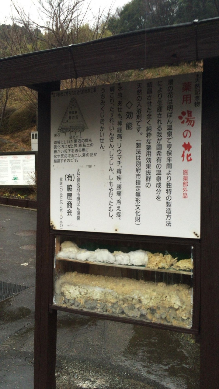別府は2回目でしたが、前回は明礬温泉に行っていなかったので今回は必ず行こうと思っていました。別府の中心から少し離れていて、...  続きを読む一番高い場所にあるので、バスでクネクネと登って行きました。たくさんの温泉施設がありますが、一番有名な明礬 湯の里の大浴場に行きました。途中、湯の花を採取するための湯の花小屋が並んでいて雰囲気が出ていました。  閉じる
