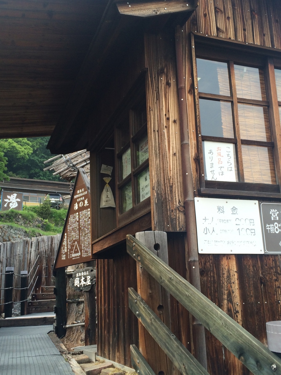 明礬湯の里、戸建ての藁ぶき屋根の家族風呂は1時間利用で2千円と納得する料金でもある。  閉じる