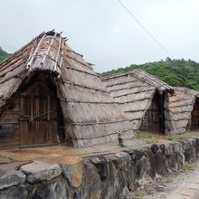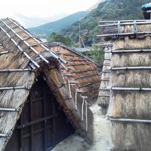 古代のお家のような三角小屋の中で製造工程を見ることができます。