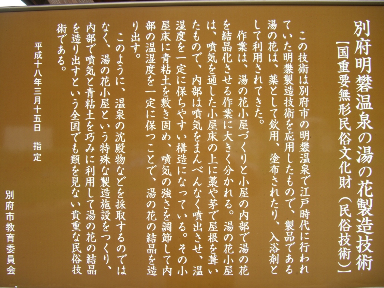 別府は2回目でしたが、前回は明礬温泉に行っていなかったので今回は必ず行こうと思っていました。別府の中心から少し離れていて、...  続きを読む一番高い場所にあるので、バスでクネクネと登って行きました。たくさんの温泉施設がありますが、一番有名な明礬 湯の里の大浴場に行きました。途中、湯の花を採取するための湯の花小屋が並んでいて雰囲気が出ていました。  閉じる