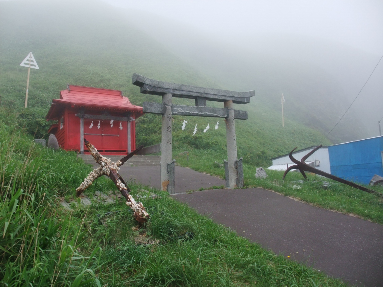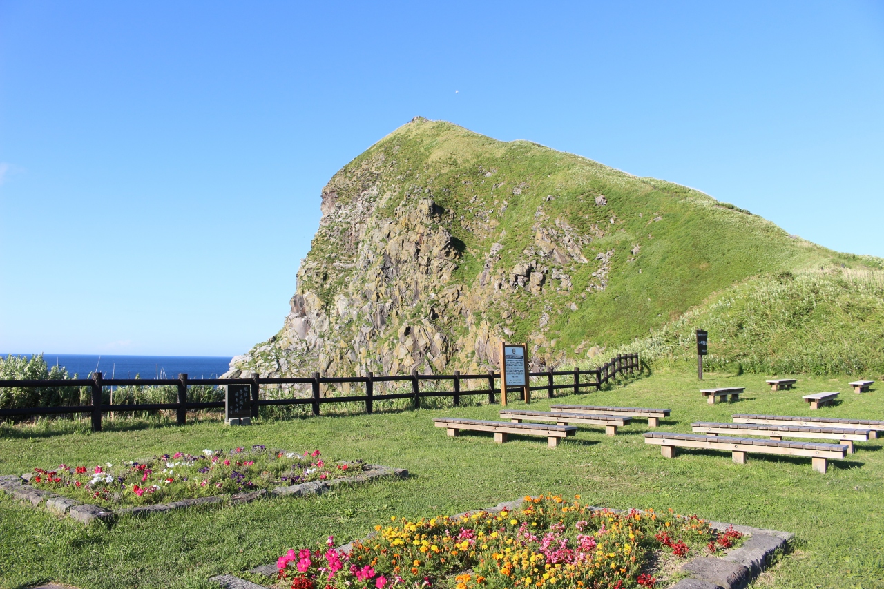 ペシ岬は、別名「灯台山」とも呼ばれ、展望台、会津藩士の墓、鴛泊灯台などがあり、頂上までは急な坂道を歩きます。