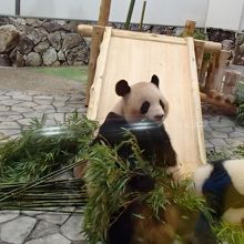 上野動物園では、太さ10cm程の竹筒に小さな穴を空けて、そこからリンゴを入れてパンダに渡すことをやっているそうです。