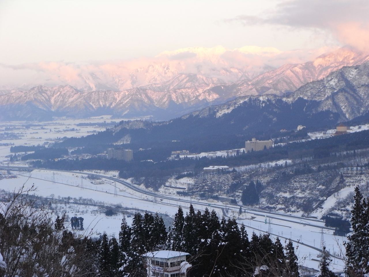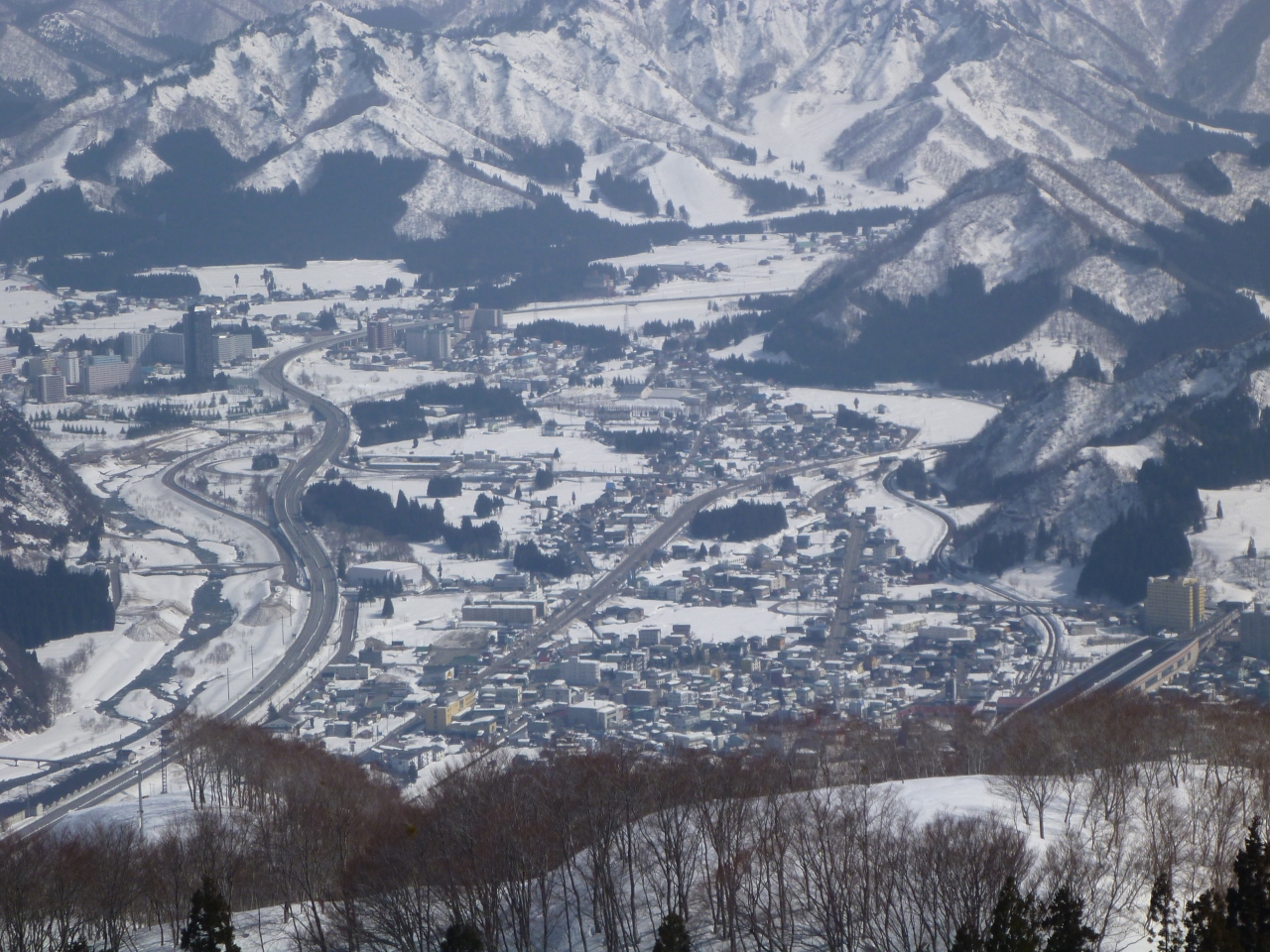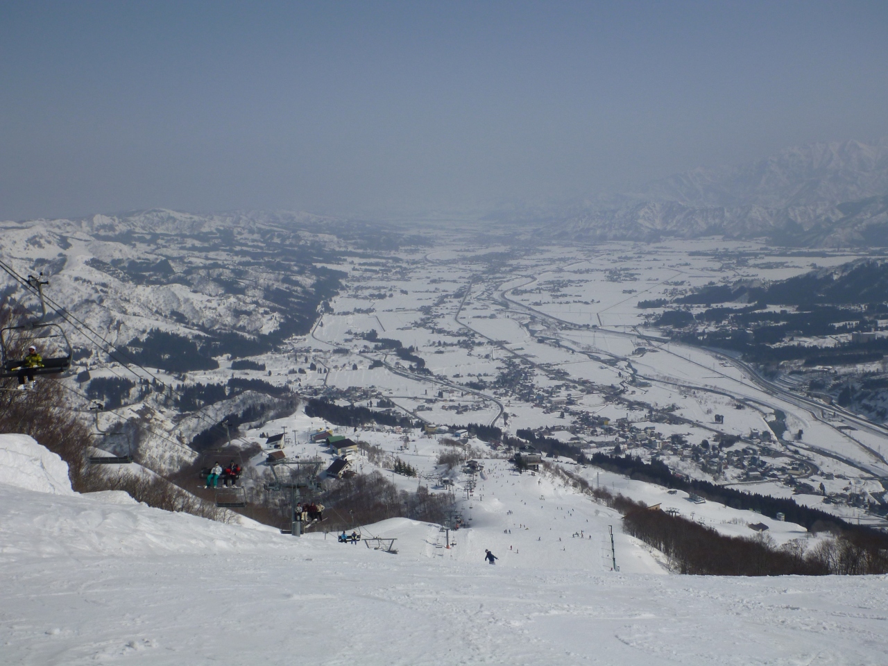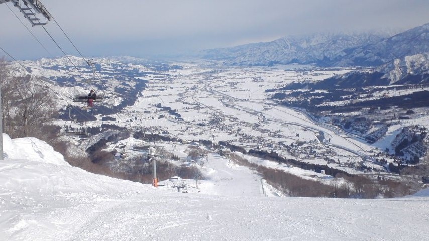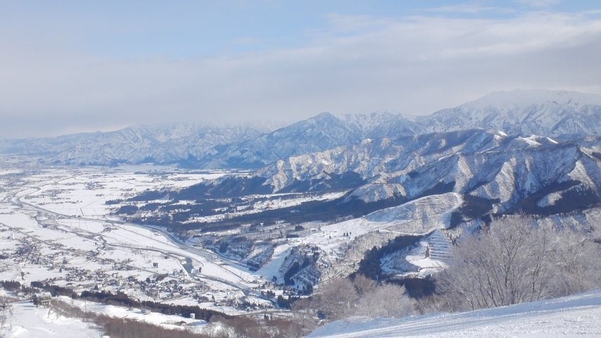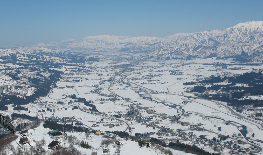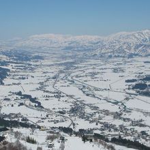 眼下に広がる魚沼平野の雄大な景色を見て下さい!