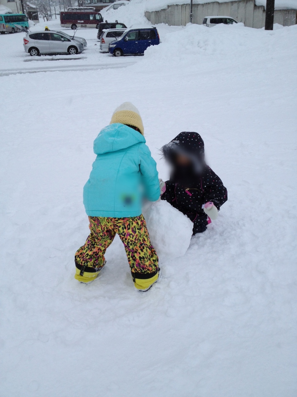 多分初心者コースのゴール地点だと思いますが、ほとんど滑っている人もいないゆるい傾斜がある場所なので、ソリで遊んだり、雪だるまを作ったりで一日中過ごせました。
