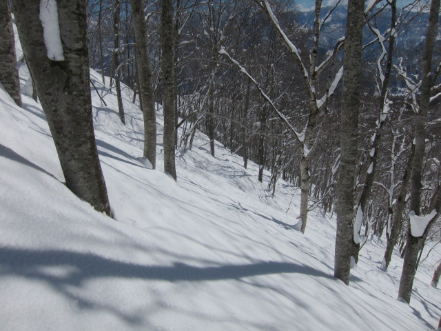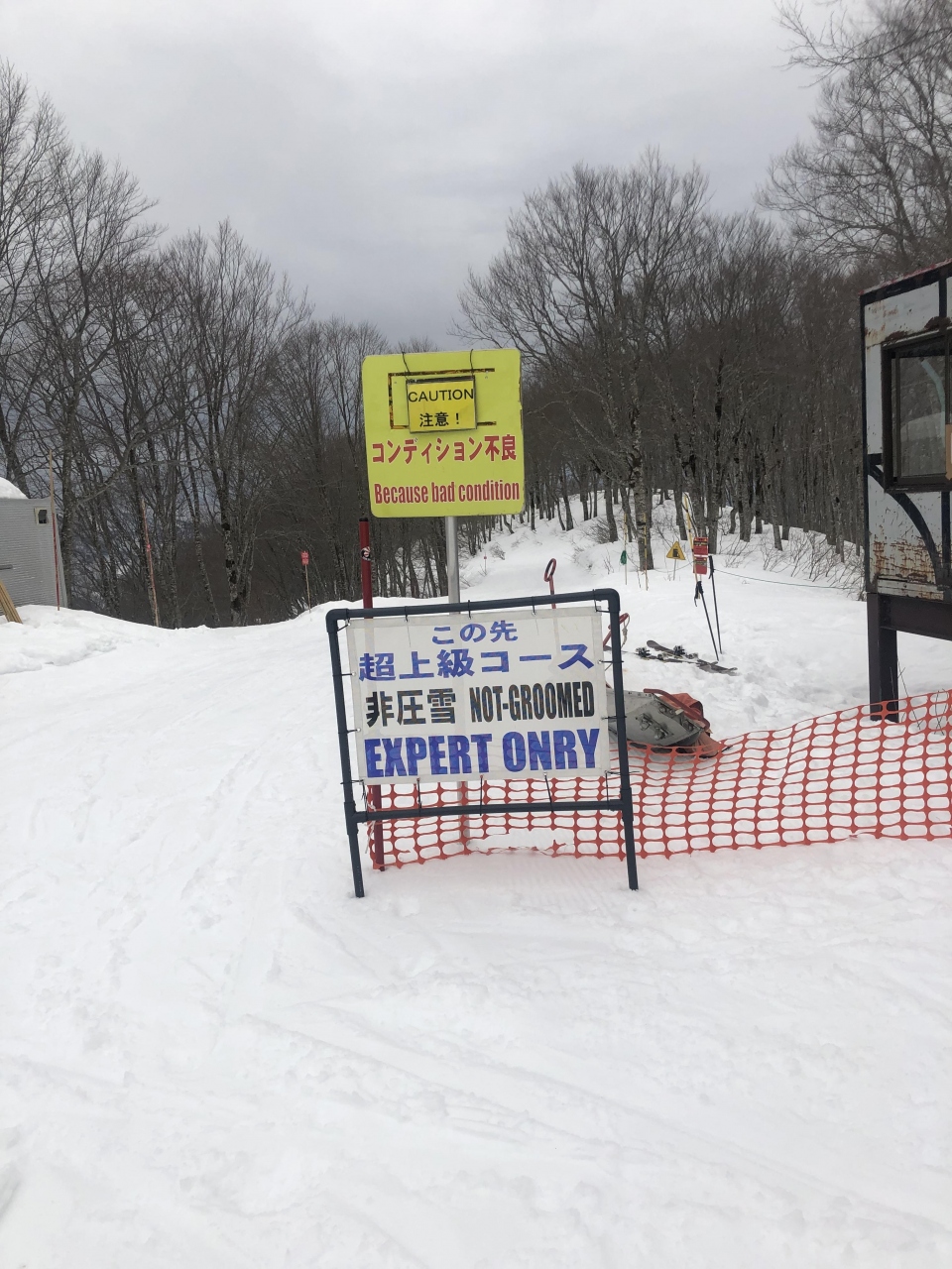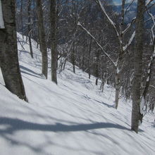 斑尾のパウダーランコースに比べ、やや木と木のピッチが狭いので注意が必要。