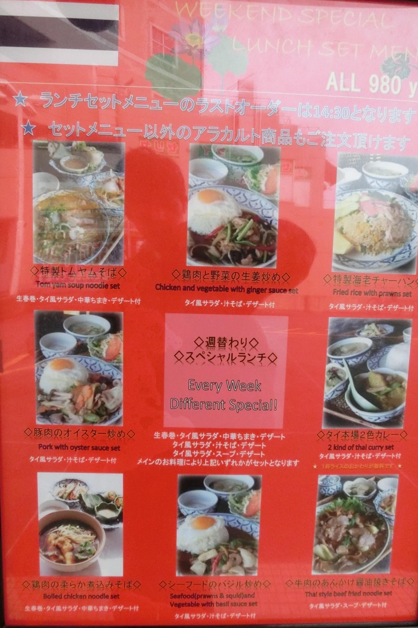 料理は、タイカレーやトムヤムラーメン、タイサラダ、お肉料理