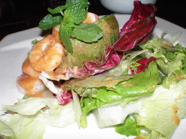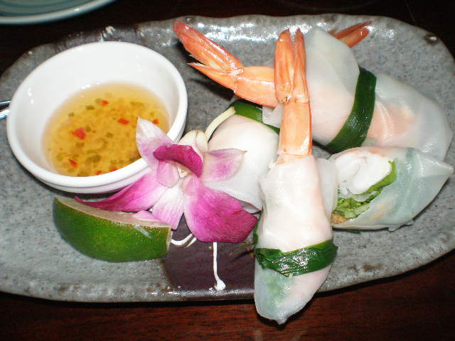 レッドカレーに生春巻き、アボカドと海老のサラダと本日のフォーを注文。