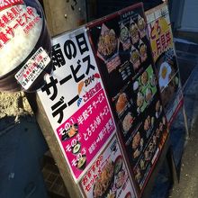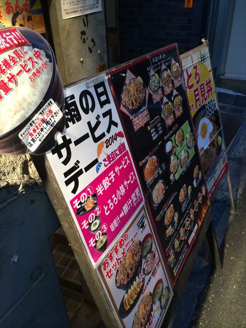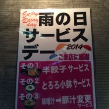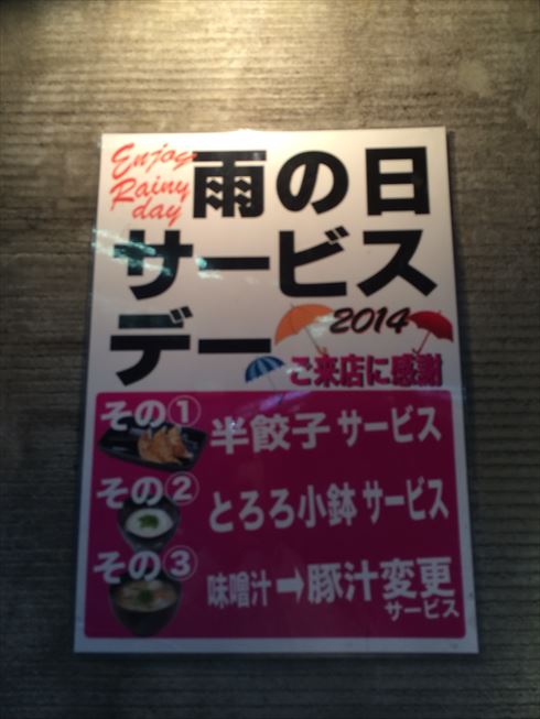 ここでは、雨の日には、サービスセットとして半餃子か、味噌汁か、とろろの中からセレクトできます。