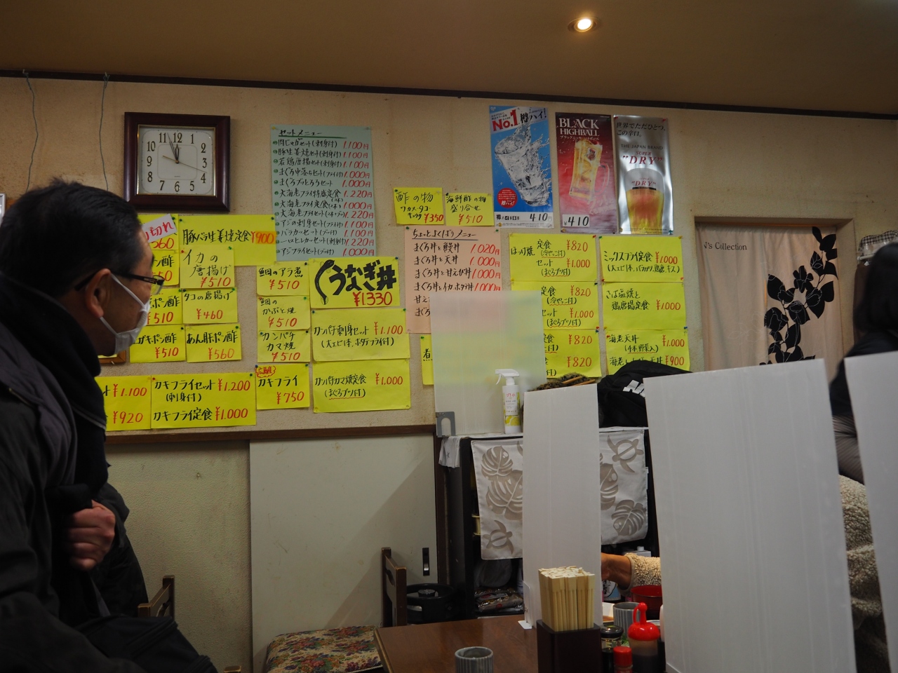 この店のもう一つの特徴は、昼呑みができること。店内には刺身やフライを肴にビールを飲んでいるお客もいます。このあたりが「市場食堂」を名乗る所以でしょうか?私もゴルフ帰りには、駅前居酒屋で昼間から友人と酒を酌み交わしていますが、この店が帰路近くにあれば必ず立ち寄るだろうと思います。
