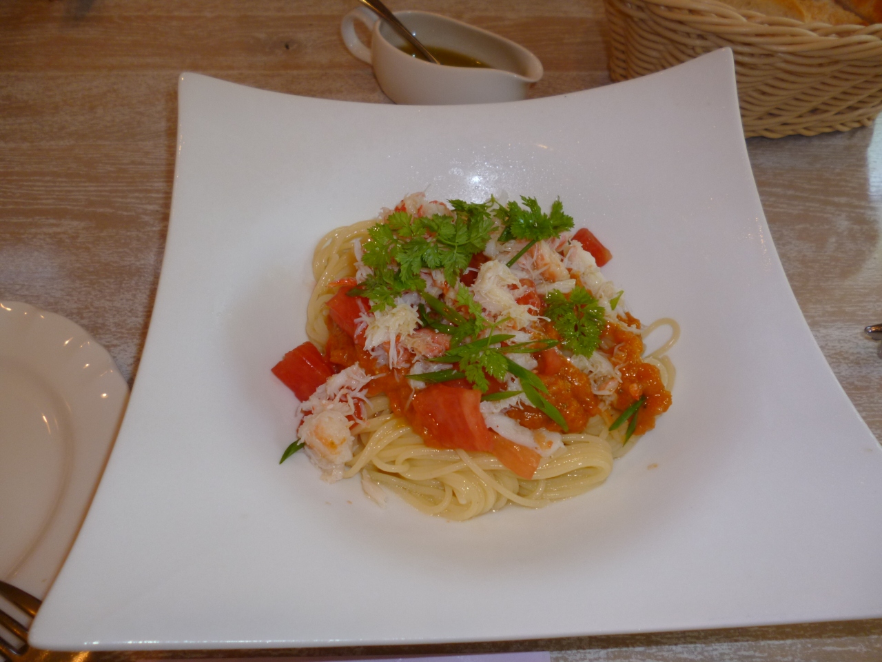 前菜orスープ、パスタ、バケット、デザート盛り合わせ、コーヒーor紅茶