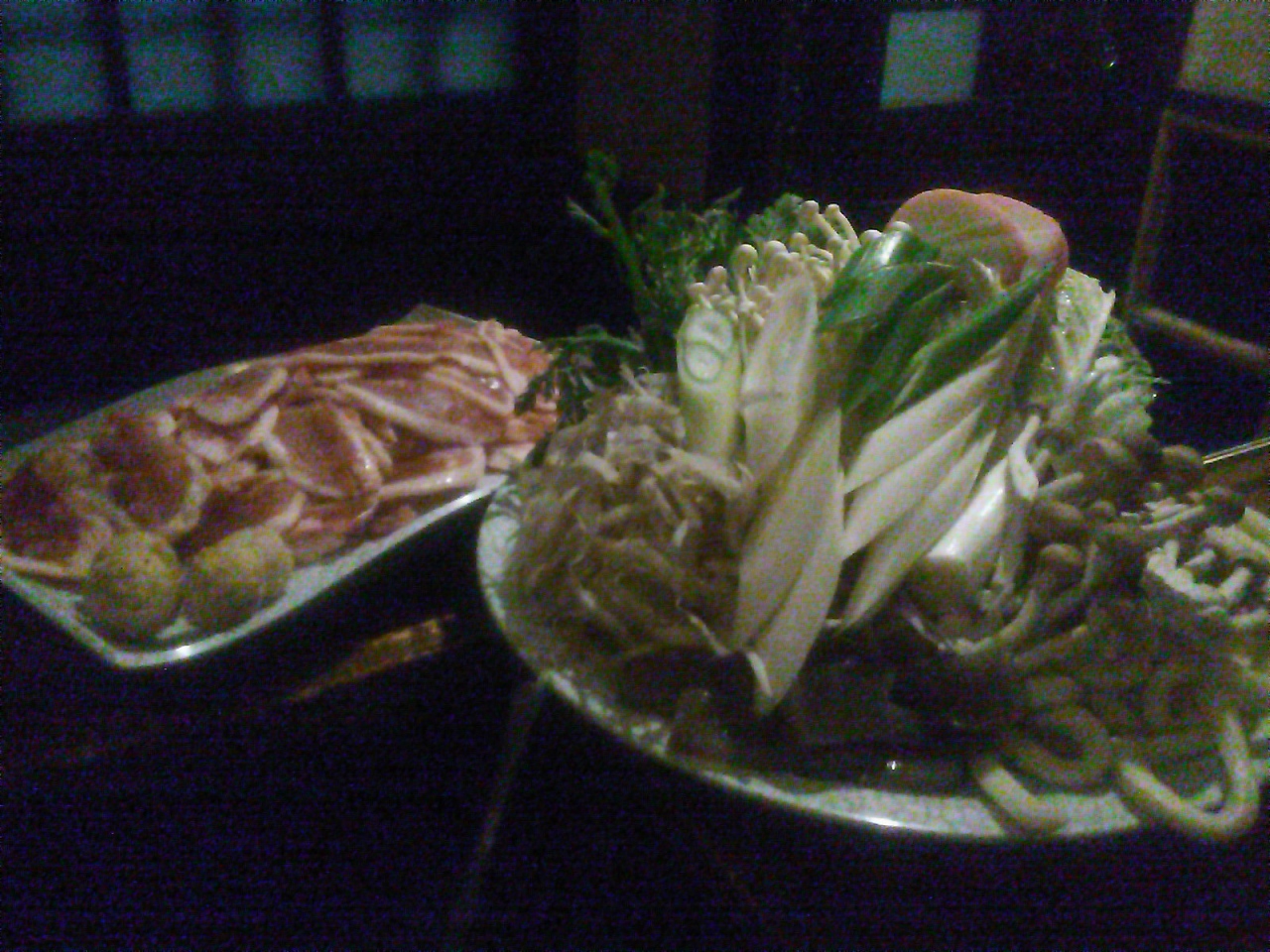お皿に山盛りに鴨肉が出てきて、さらに山盛りの野菜&うどん。