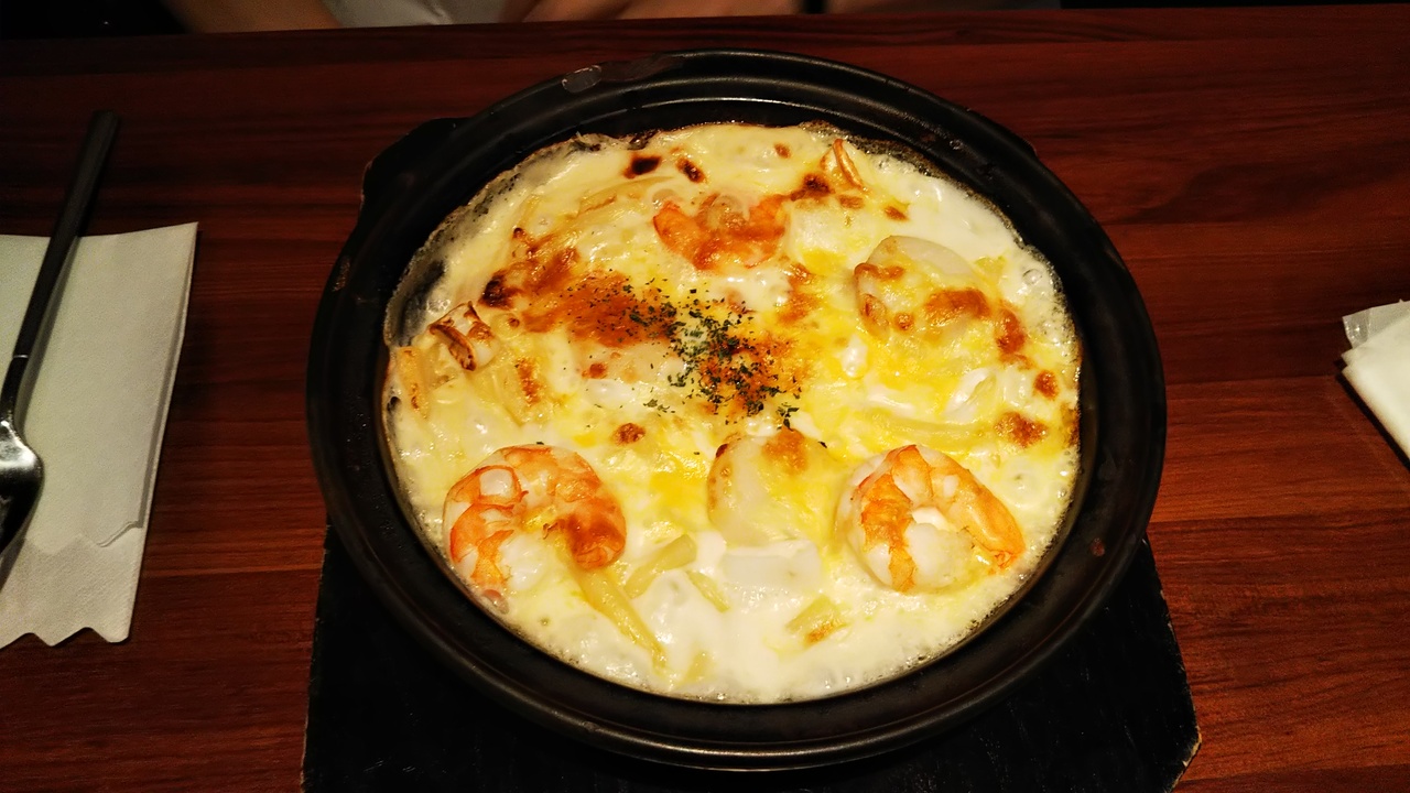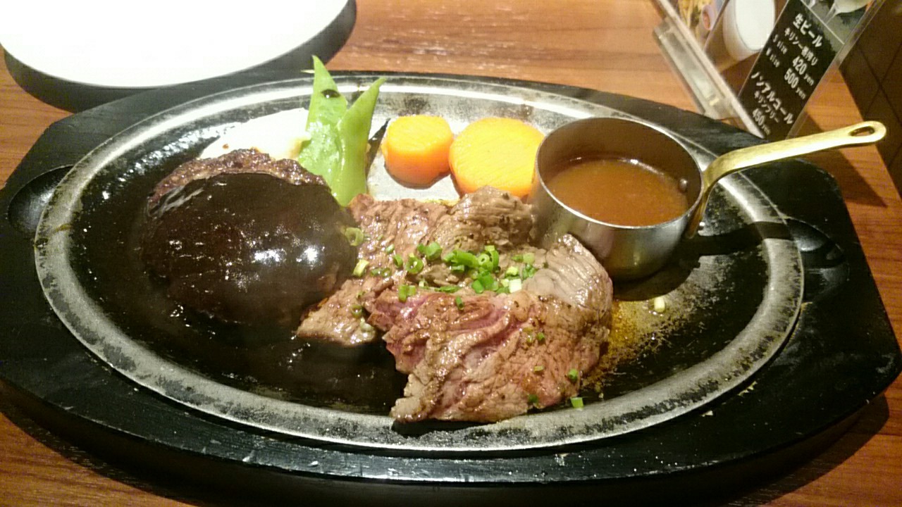お店の前に出ていた大人のお子様ランチに惹かれて入ったのですが、いろいろと迷った結果、そごう横浜店限定メニューの『国産牛ハンバーグステーキ・北海道クリームチーズのデミグラスソース&海老と帆立のグラタン』のセット¥1,480にしました。