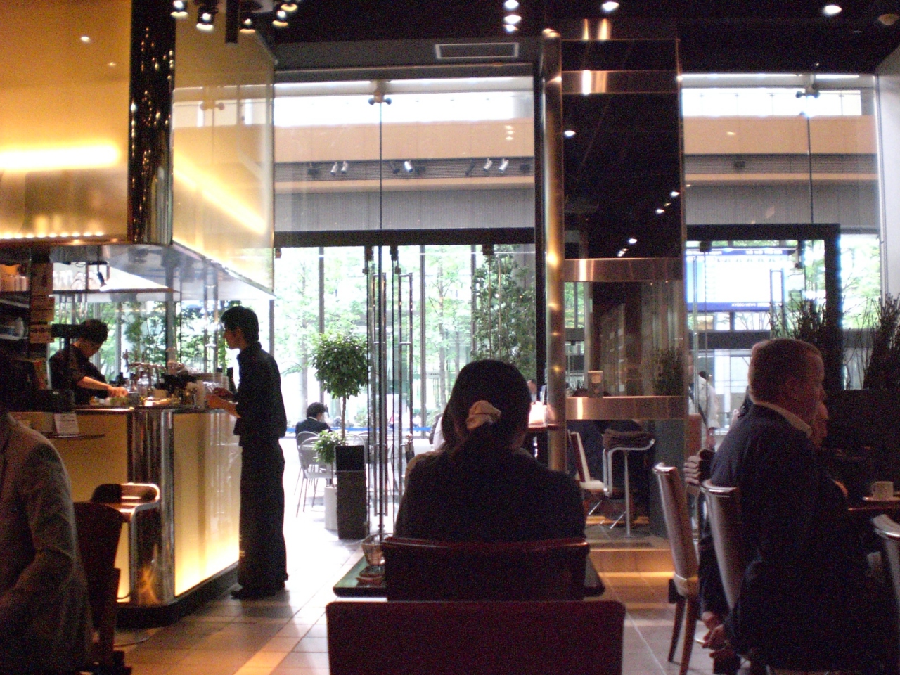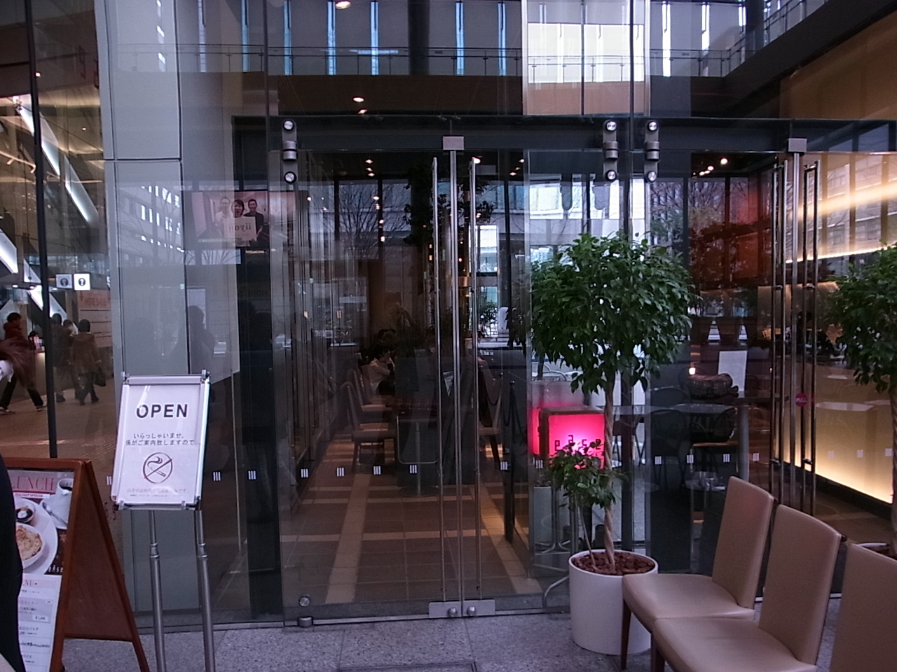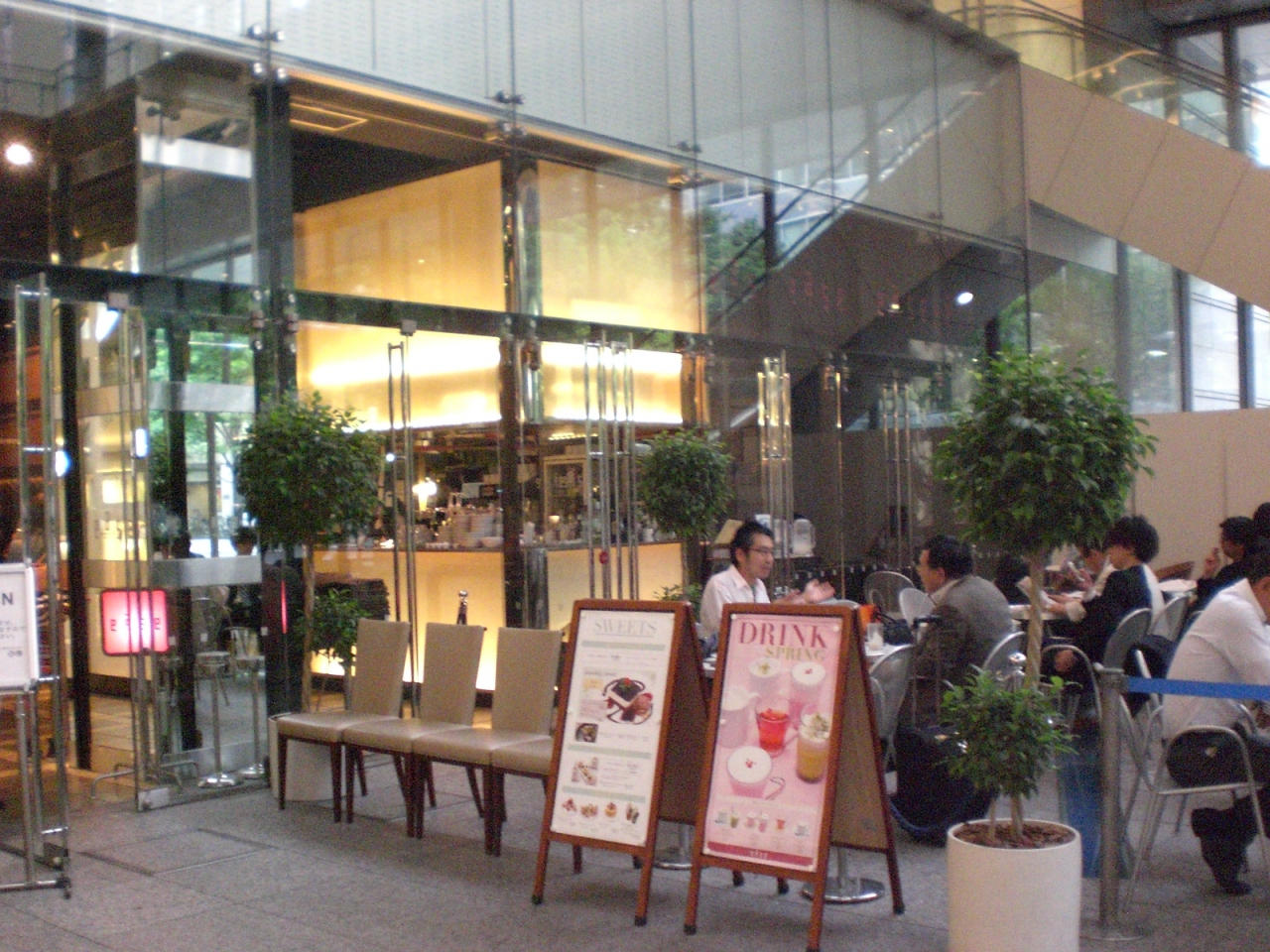丸ビル1Fのガラス張りのカフェ。
