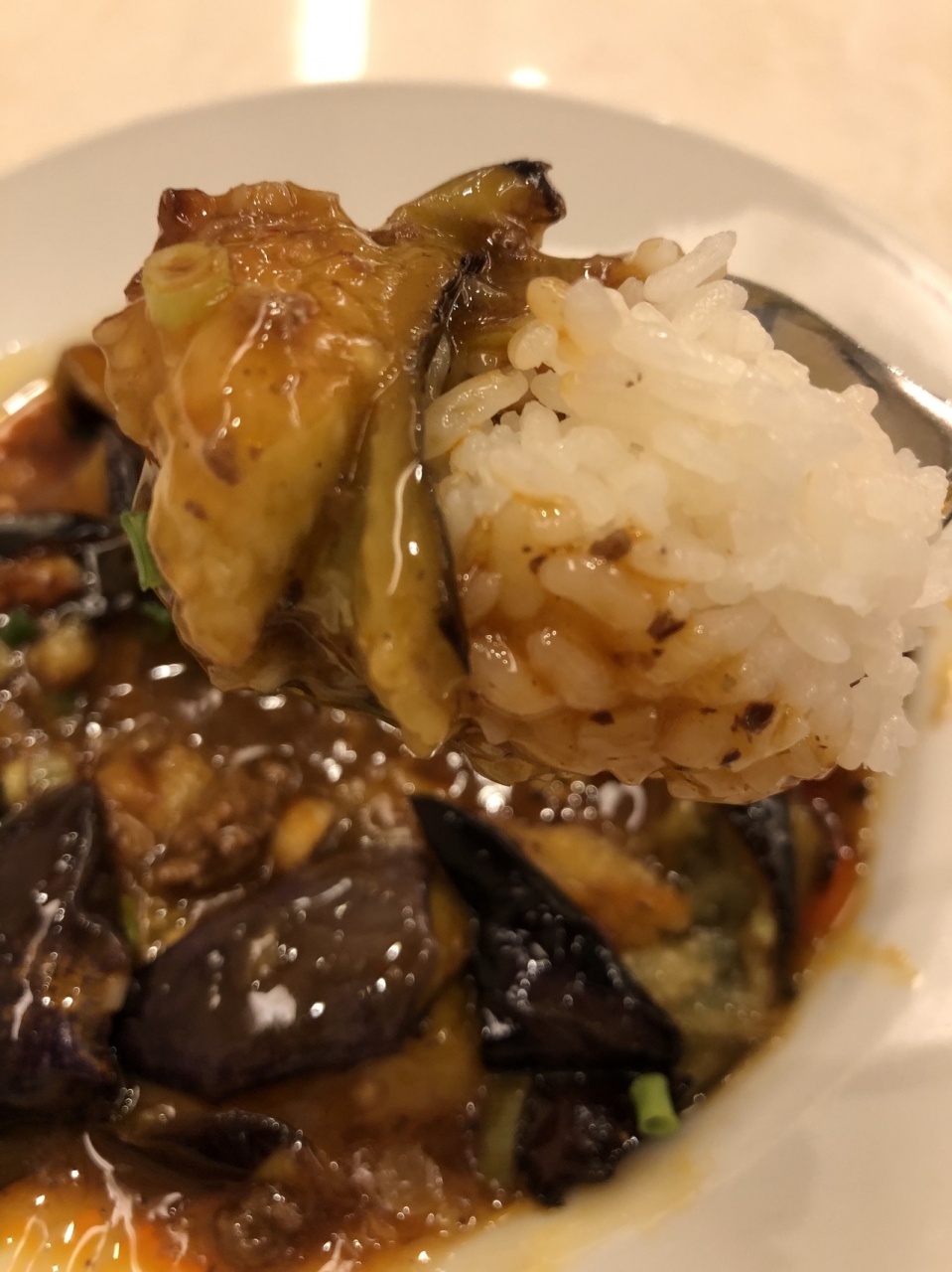 マーボーナスを一口口に運んだ…辛さほ抑えめだ
