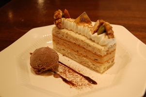 そしてデザートは大きなプレートに見本のケーキがいくつか乗っていて、その中から選ぶシステムでした。