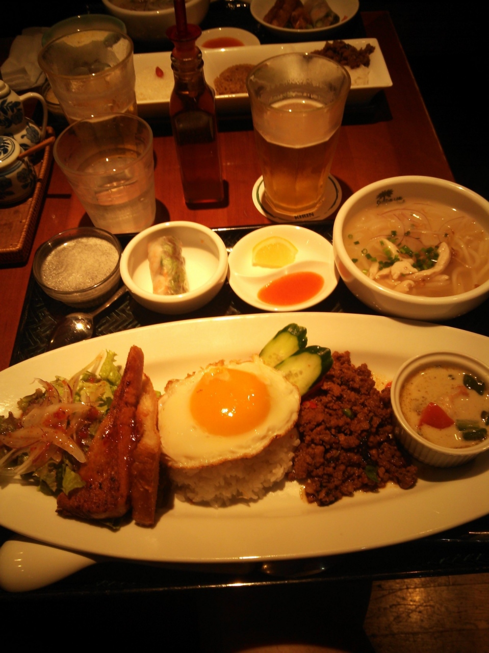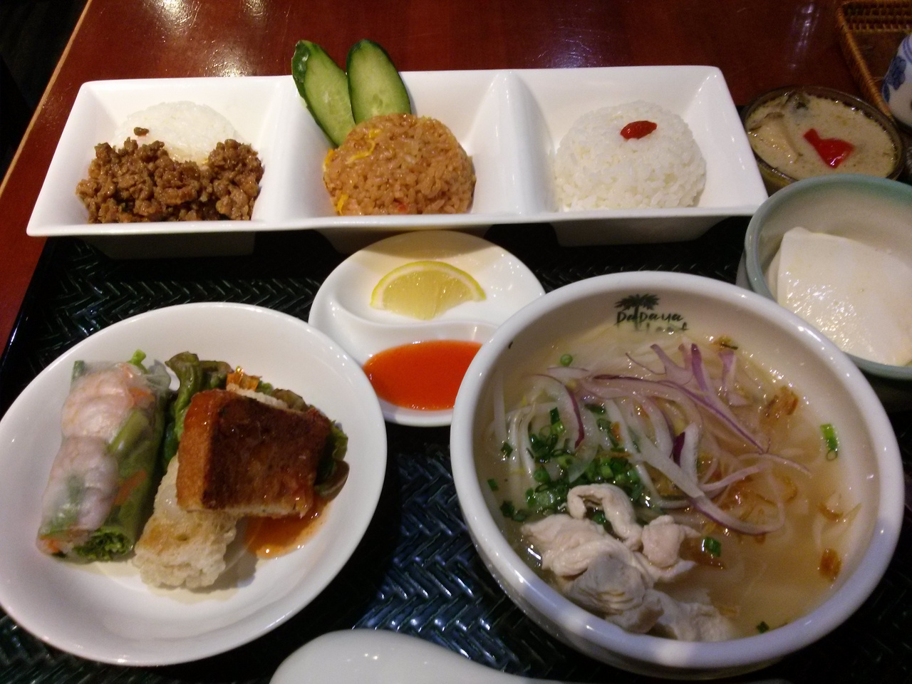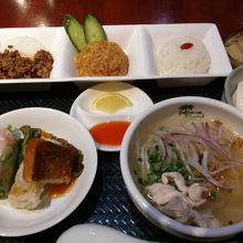 春巻き、カレー、ガパオ、フォー等ちちょっとずつ食べれていい感じです。