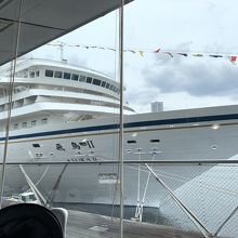たまたま停泊していた大型客船もむしろ風景の一つになっていました。