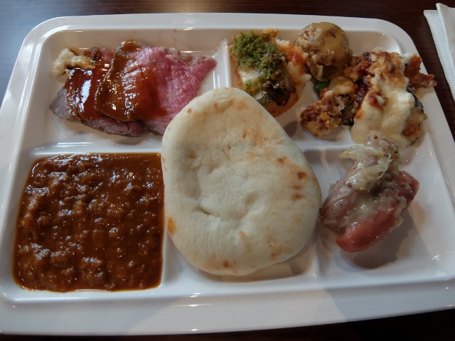 もちろん、人気の理由は利用しやすいからだけでなく、その味の良さとメニューの量による所が大きいです。ローストビーフをたくさん食べたいところですが、他が入らなくなりそうなので敢えて控えめにしたりとか。毎回戦場です。