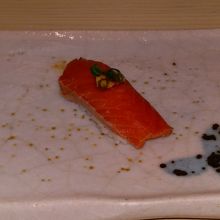 ネタとシャリの間に柚子を少し忍ばせたり、岩塩をさっと振りかけたり、