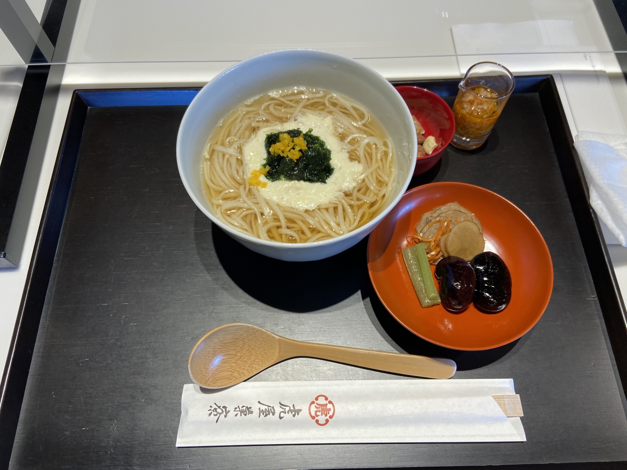 娘は孫に取り分けられるようにと季節のうどん(1500円)とあんみつ(黒)を注文しました。