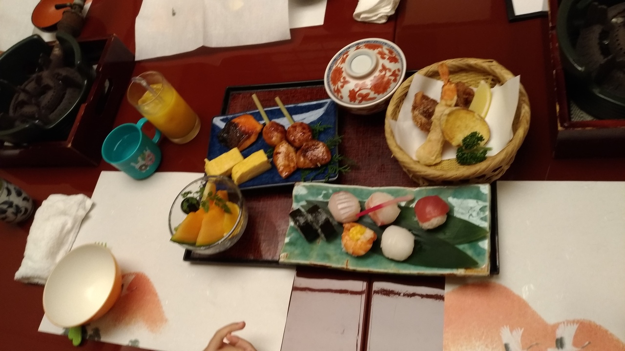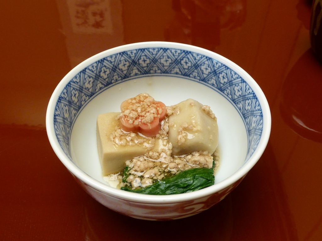 うどんすきコースの前菜、小鉢、刺身