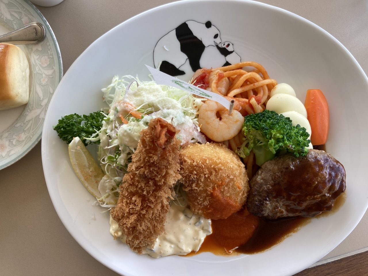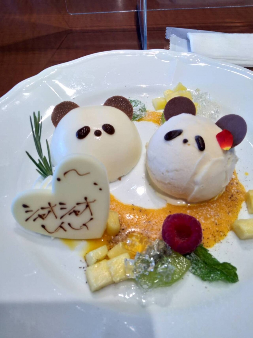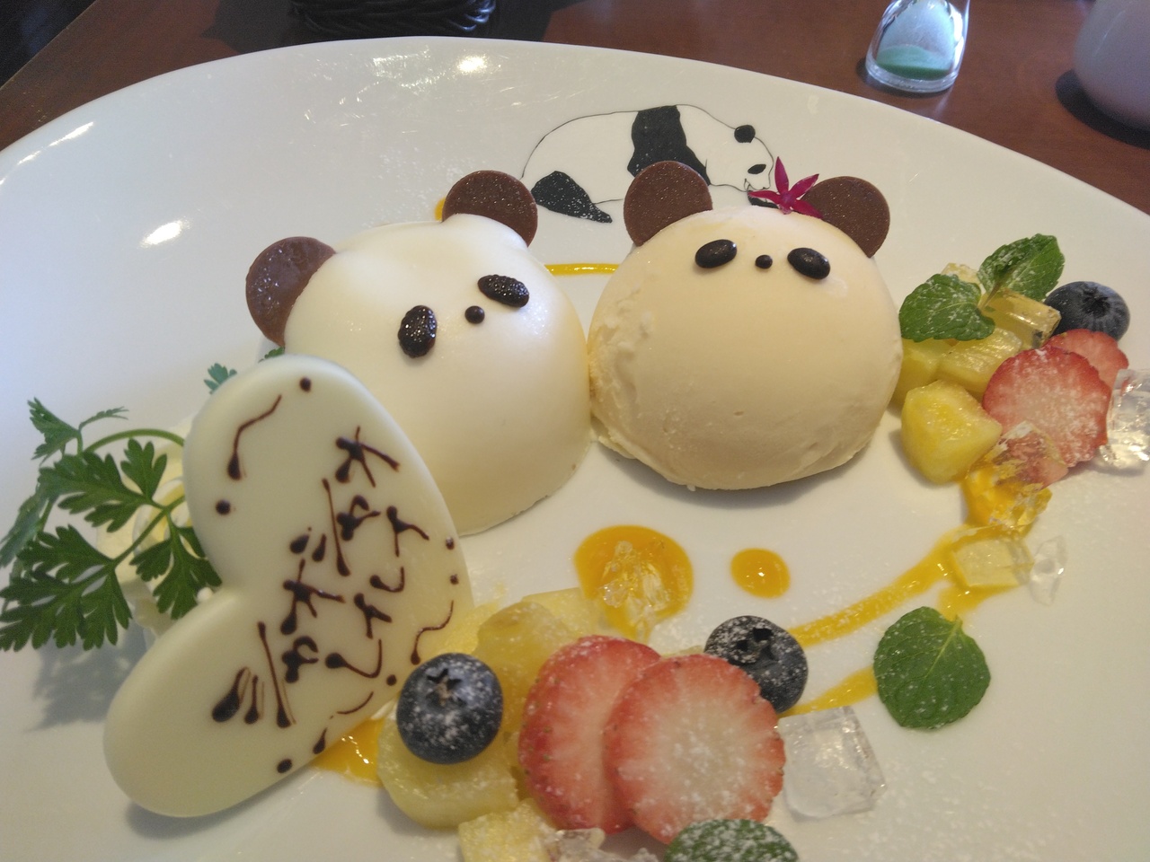 いつものハヤシライスに加えて、ふたごパンダ観覧記念に双子パンダデザートも食べました