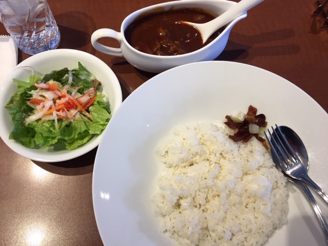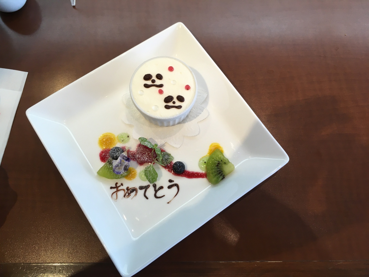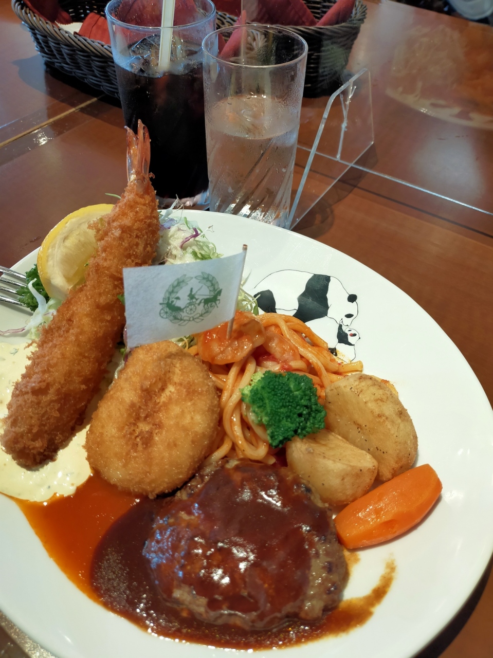 いつものハヤシライスに加えて、ふたごパンダ観覧記念に双子パンダデザートも食べました