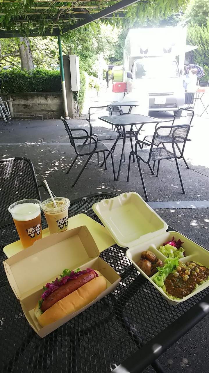 双子パンダの観覧も再開して当選したので出掛けのでパンダカフェに寄ってみた。大変良いお天気の日でしたが、11時のオープン時だったので人は少なくて木陰の席を取りキッチンカーに買いに行った。ビールのレギュラーサイズが500円、スゴく大きなレギュラーサイズでこれは安い。Mサイズのカフェラテも大きい。1000円のキーマカレーもなかなか美味しい。精養軒の味が格安でお得。まだみんな知らないのかも知れないが、これから夏になるとビールでこの駐車場の席はいっぱいになって賑やかになりそうな気配。それまでにキッチンカーのお姉さんはもう少し手際がよくならないと裁ききれない心配。