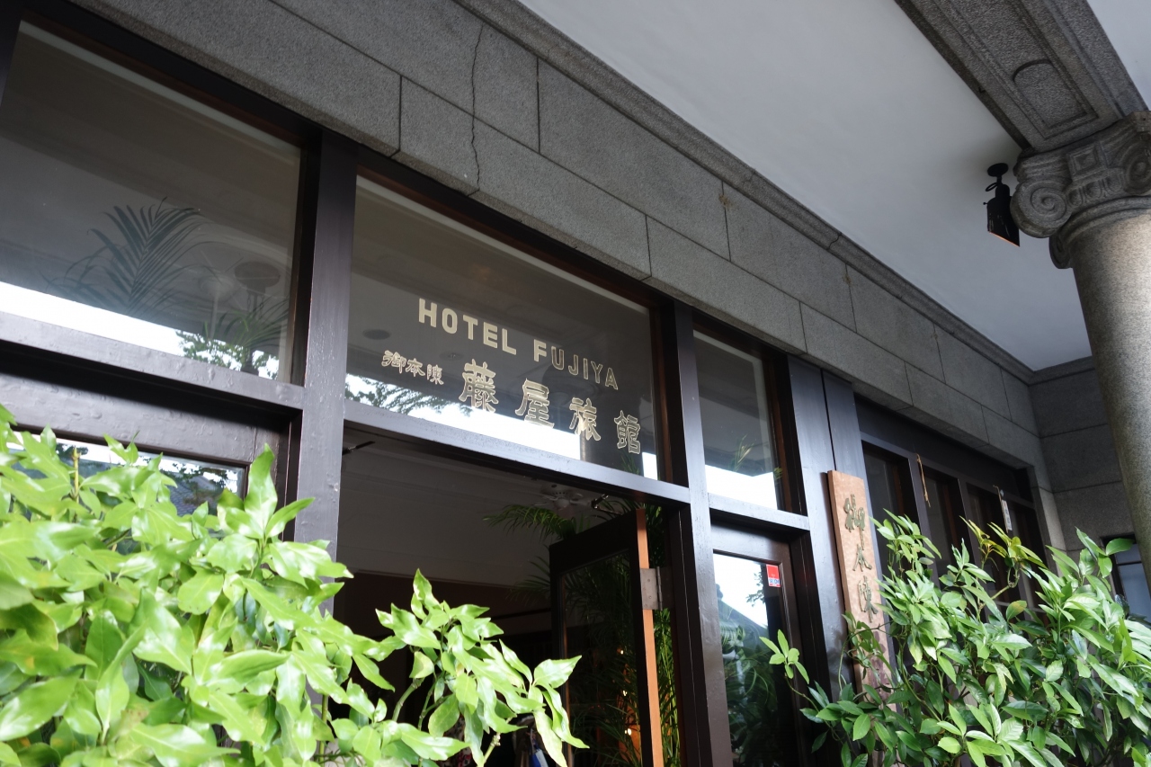 こちらは老舗ホテル「THE FUJIYA GOHONJIN」の玄関先に。