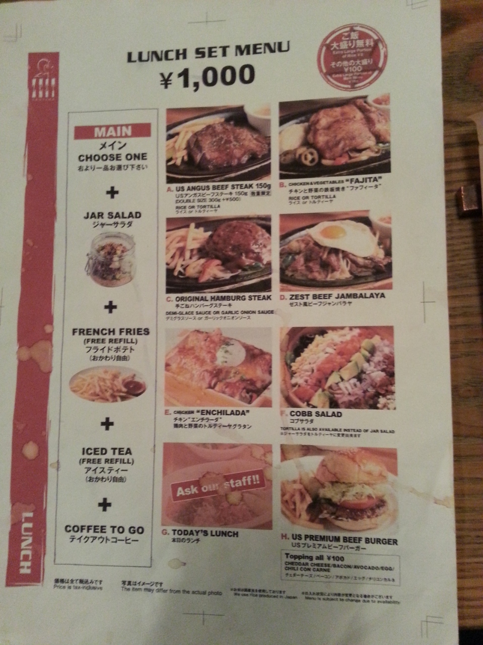 ランチセット(8種類)が¥1000