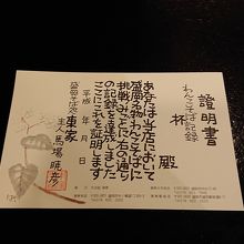わんこそば記録証明書です