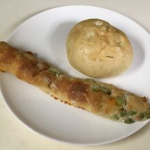 ピザのような具が入ったソジャアンブランシュをメインに、梨のクリームが入ったパンを購入した。
