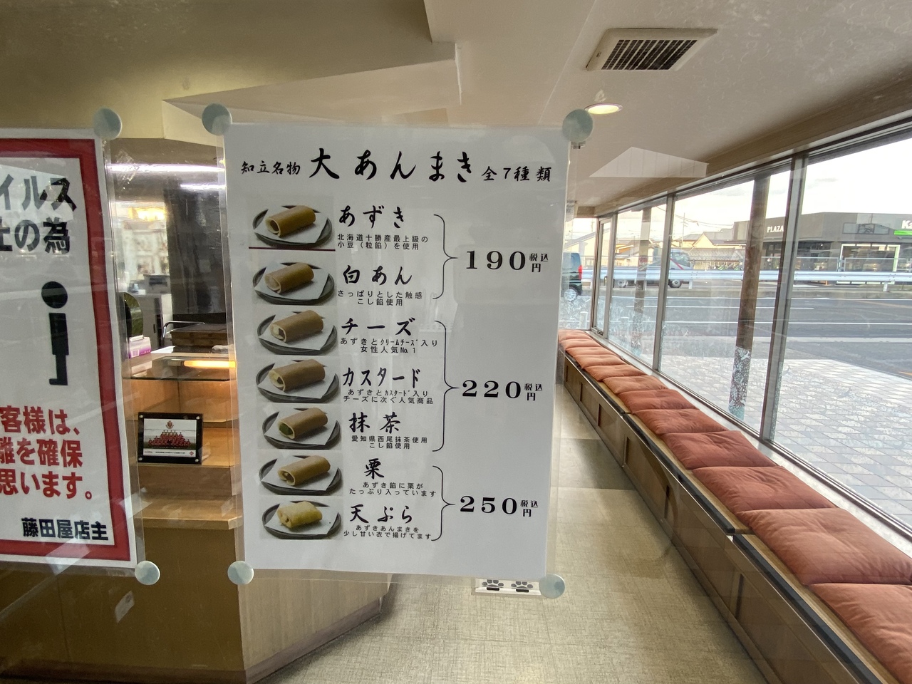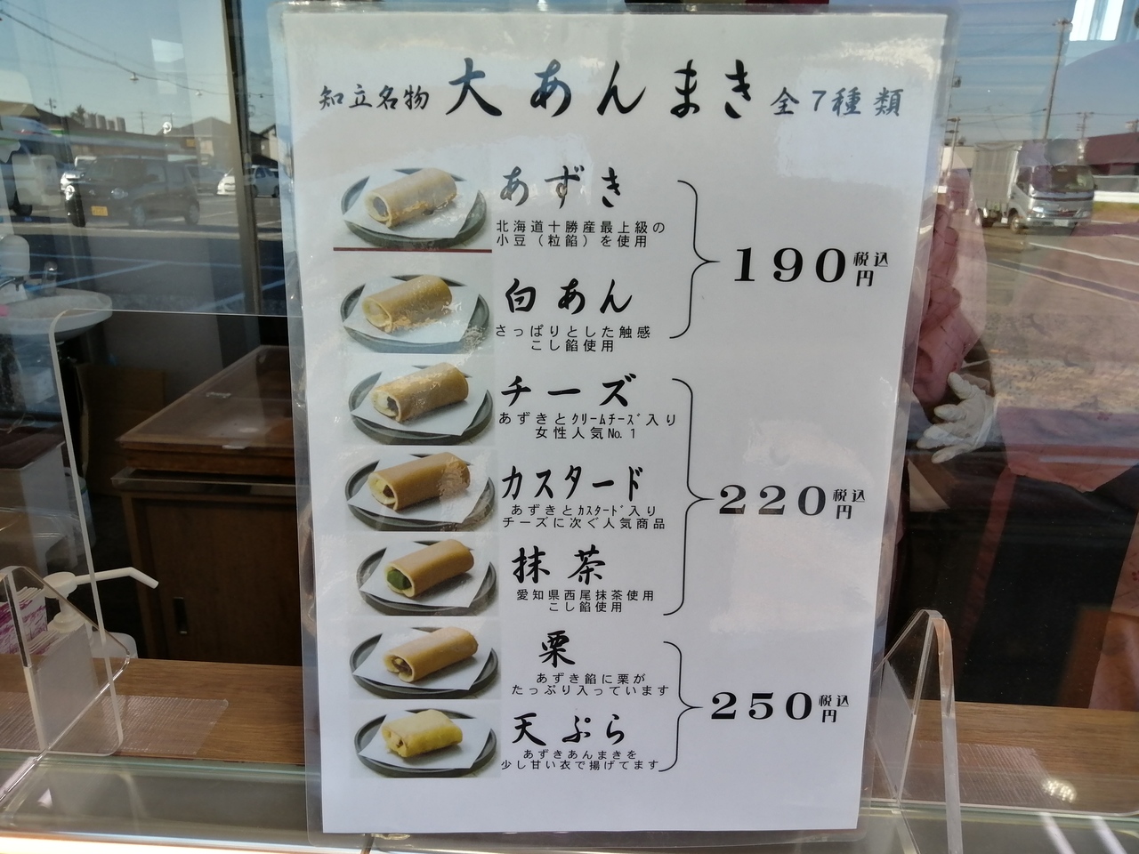 岡崎から名古屋方面へ向かう国道1号線沿いに『大あんまき』で有名な『藤田屋』さんの本店がありました。私は東京方面に向かってい... 続きを読むたので信号でぐるりと方向転換をして駐車場に入りました。駐車場はトラックや大型観光バスも入るため、かなり広かったです。敷地内にはファミリーマートもありました。こちらの『藤田屋』本店では、大あんまきの販売所の他に食事できるところもあり、宴会もできるようでした。私は夕方、行ったのでレストランは閑散としていましたが定食など手頃な価格でいただけるようでした。190円の小豆が入った大あんまきを買いました。焼きたてでほのかに温かく、車の中ですぐに頂きましたが、とっても美味しかったです。サービスエリアにある支店でも何回か購入したことがありますが本店の大あんまきが1番美味しかったです。気のせいかもしれませんが支店の大あんまきより本店の大あんまきは大きかったような気がします。あと、『池鯉鮒』で『ちりゅう』と読むのにびっくりしました。 閉じる