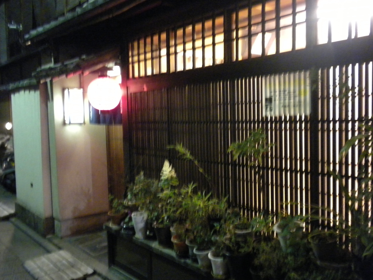 夜の外観。風情は有るのですが一人では入り辛い雰囲気