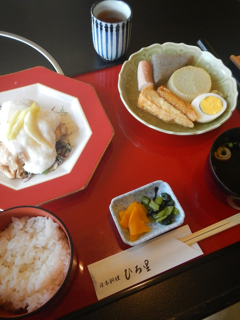 その名の通り、内容は日替わりで、この日はチキンのとろろ掛けと、おでんだった。