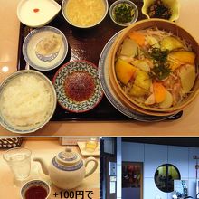 この日は期間限定メニュー「野菜と鶏もも肉のせいろ蒸しセット」(850円)を注文。