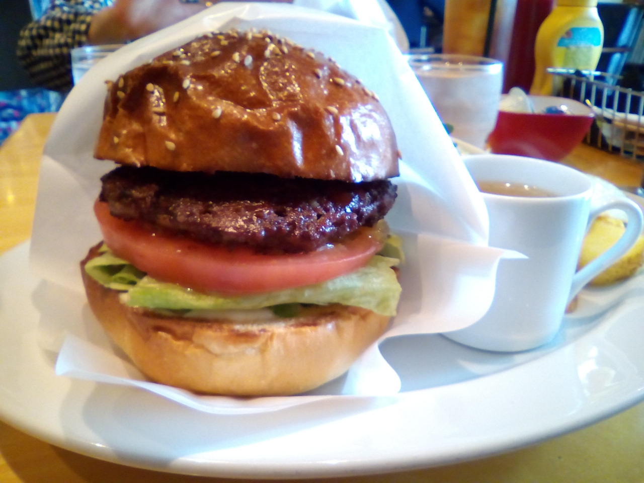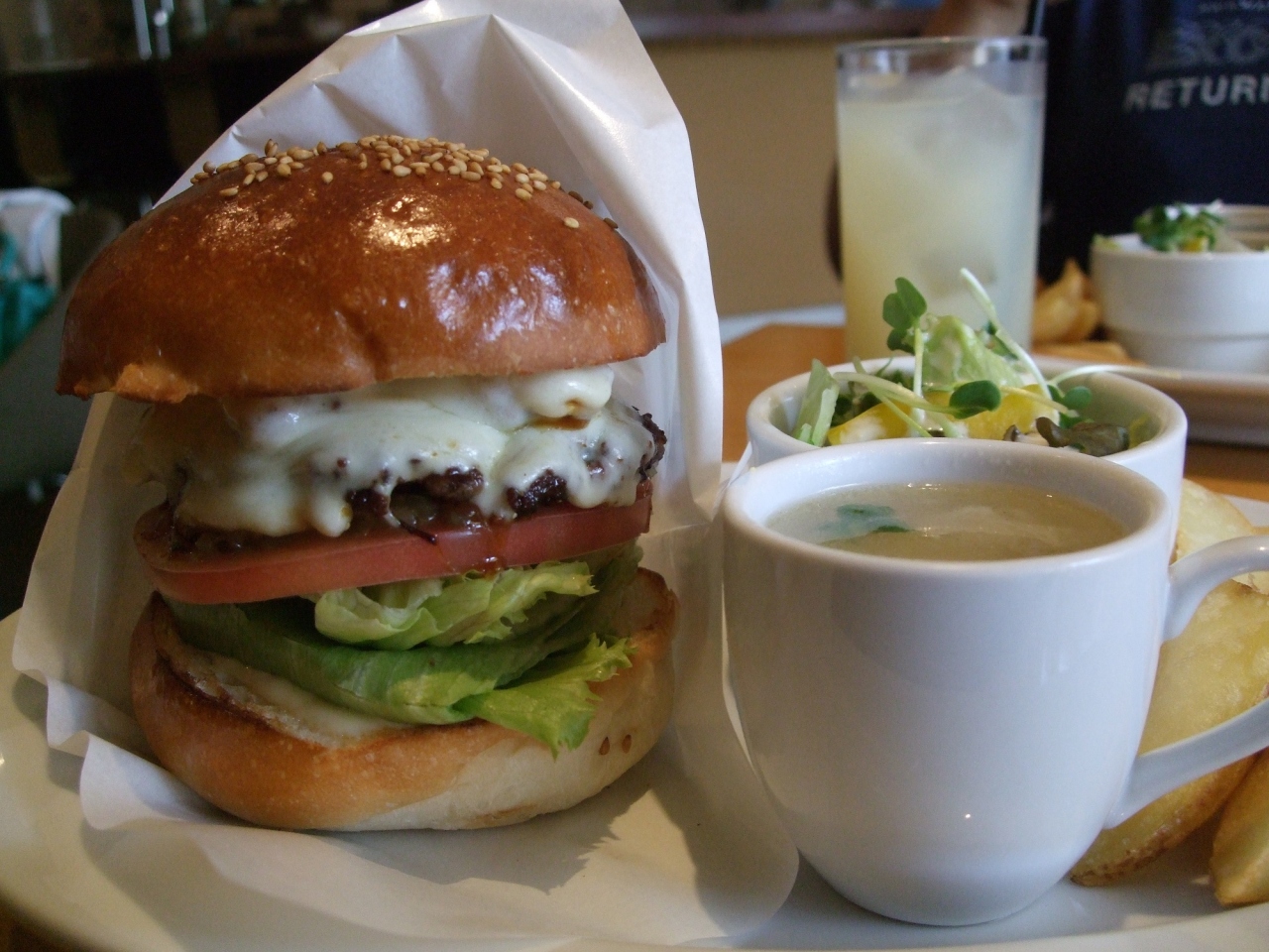 奥さんが佐世保市出身なのでハンバーガーには一家言あるが、ここは佐世保バーガーとはまた異なる本格的な味で満足した。どちらか... 続きを読むといえば女性向けにアレンジされた店内は余裕がある席配置だが、それがゆえにすぐ満席になる。11時半ごろに入店したが、正午には列ができていた。この日はハンバーガーとチーズバーガーのランチセット、コーヒーをオーダーした。月並みだが、バランスがいい味で、肉と野菜とバンズ、塗ってあるマスタードなどの味がうまく調和している。よくないハンバーガーは食後に胃もたれするのだが、そんなことはなかった。ハンバーガーがおやつではなく食事になるしっかりしたショップだった。 閉じる