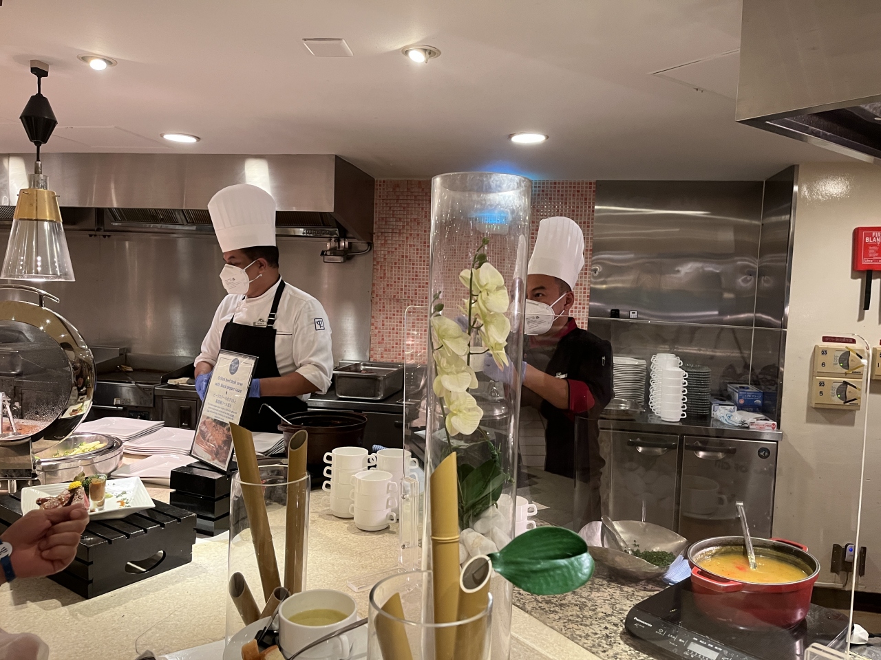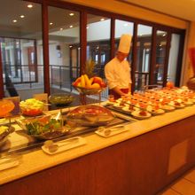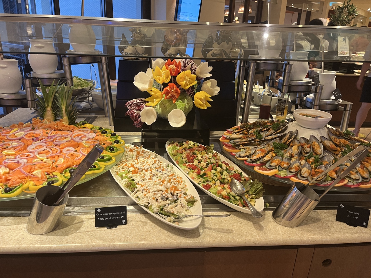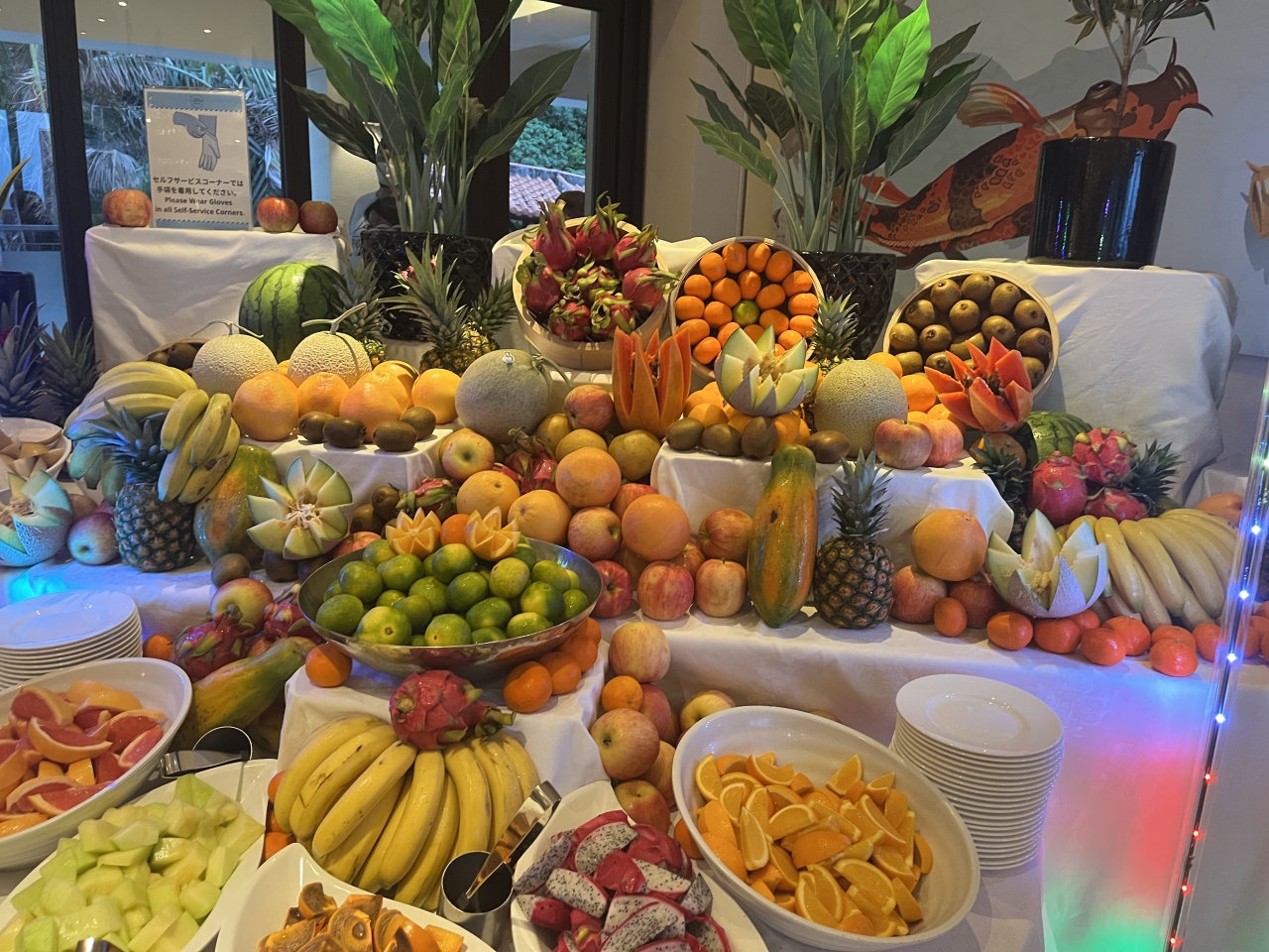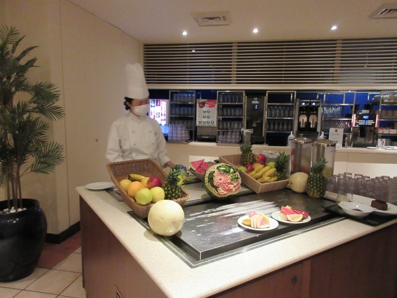 ブッフェスタイルですがメイン料理はサンプルプレートのようにスタッフが取り分けてくれます。嫌いな食材は避けることも可。逆に、好きな食材はいくらでも盛り放題。握り寿司のサーモンだけを10貫山盛りにした人も見ました。孫たちはマンゴーを食べ尽くしました。基本的に「ノー」という対応はないようです。