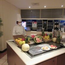 フルーツも種類が多く新鮮。リクエストすればいくらでもスタッフが皮を剥き、カットしてくれます。下の孫は3食、フルーツばかり食べていました。