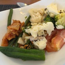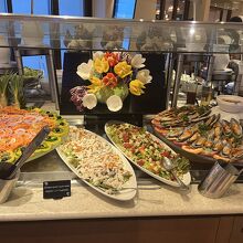 特筆すべきはサラダの種類の多さと食材の抜群の鮮度。プレゼンテーション美しく、毎日いろいろなサラダが提供されます。