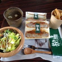 セットにはサンドイッチの他にフライドポテト、スープ、器にたっぷりのサラダが付きます。サラダのドレッシングはカツオとバジルの2種。カツオドレッシングはさっぱりして好みの味。サンドイッチはとにかくパン自体がもっちり美味しく感激のお味。ハバネロの辛さと蒸し鶏、夏野菜も食欲そそる辛さで美味しい!見た目も夏野菜でカラフルです。