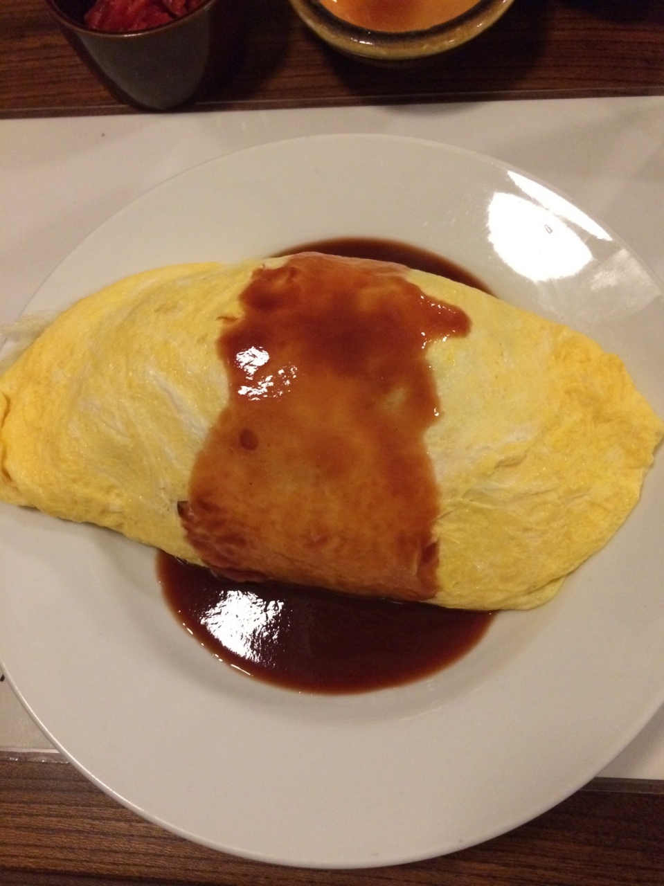 卵が薄く、流行りのふわふわオムライスではなく、正統派オムライスなのは、高ポイント。